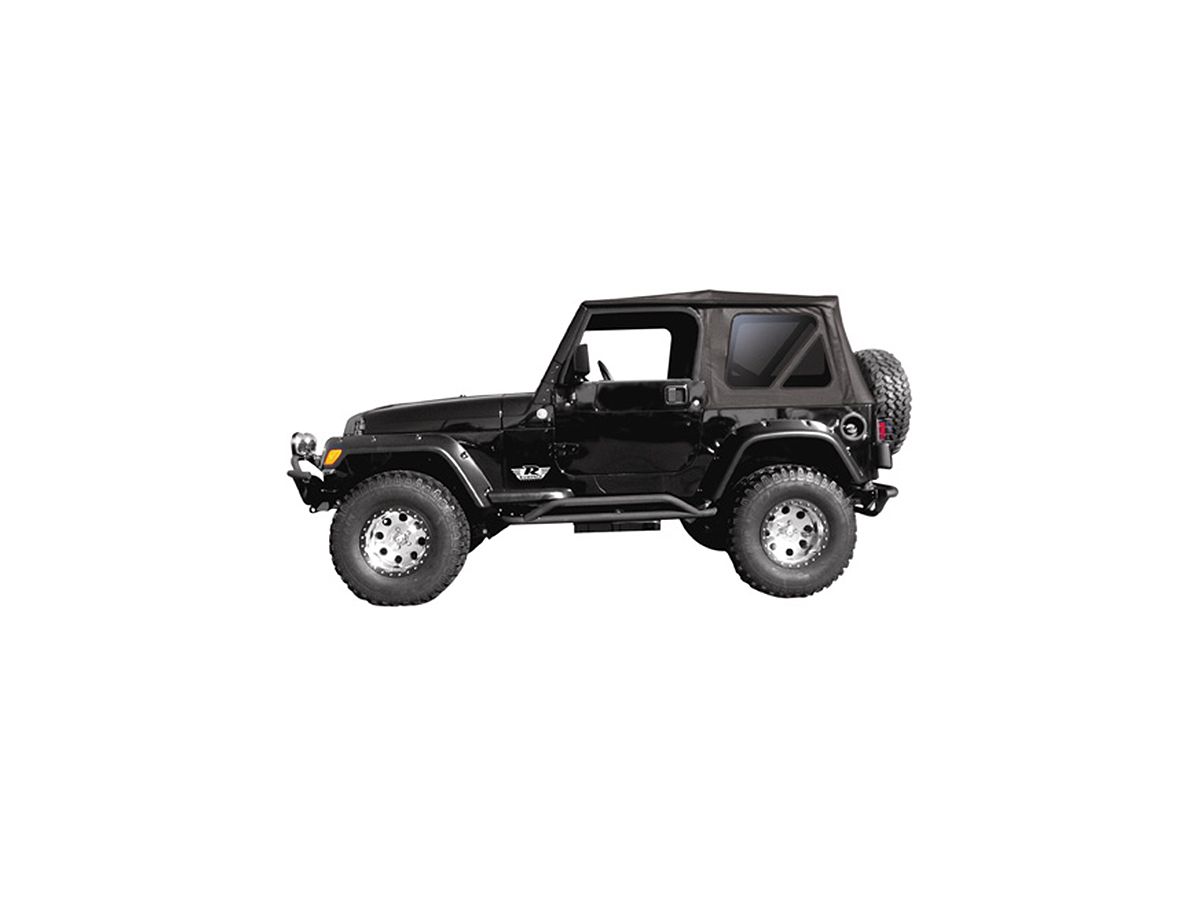 Replace your aging, worn out factory soft top and gain some additional storage inside the driving compartment too! Rampage Replacement Soft Tops pack all the same features of the original factory top with some additions that you never got stock, like two zippered front storage pockets to store your personal essentials. Marine-grade self-correcting zippers on the windows ensures smooth operation and years of trouble-free service. Manufactured to original factory specifications and colors, the Rampage Replacement Soft Top easily installs over the factory frame and attaches to factory belt rail attachment system, so there’s no guesswork on the install. Choose from clear or optional tinted windows for a classy, custom look.