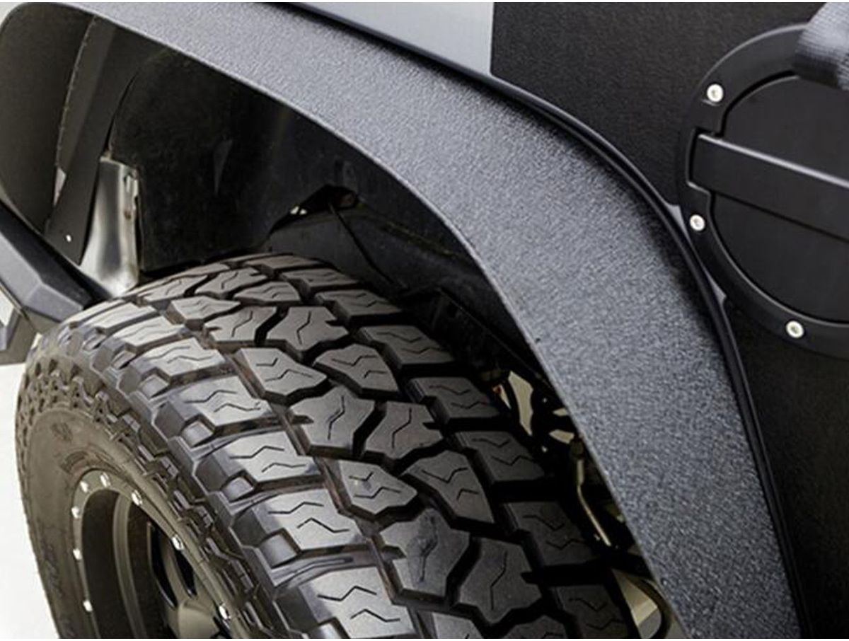Ditch your Jeep® Wrangler's scratch, crack, and damage-susceptible factory fender flares for maximum style, clearance, and durability. Of course, we're referring to the steel fender flares from Rampage Products—a RealTruck brand.
