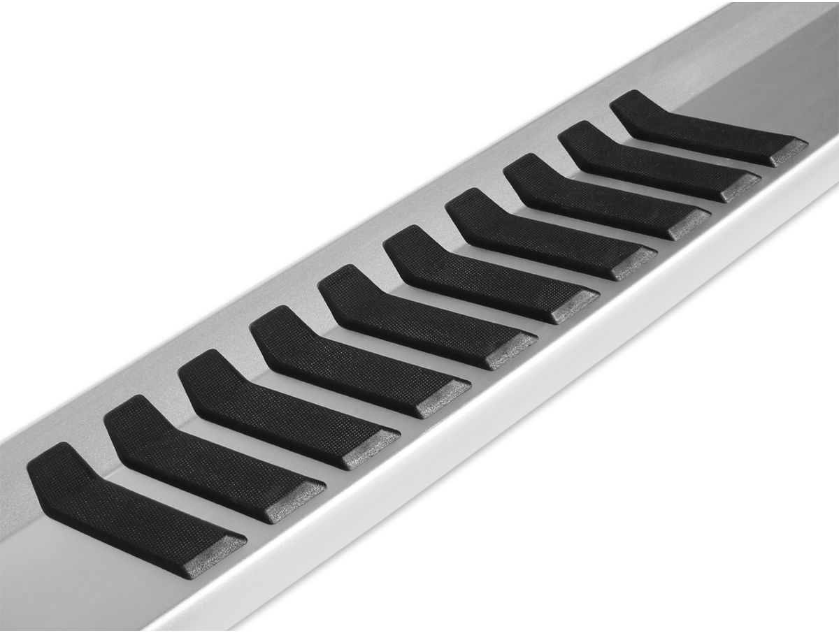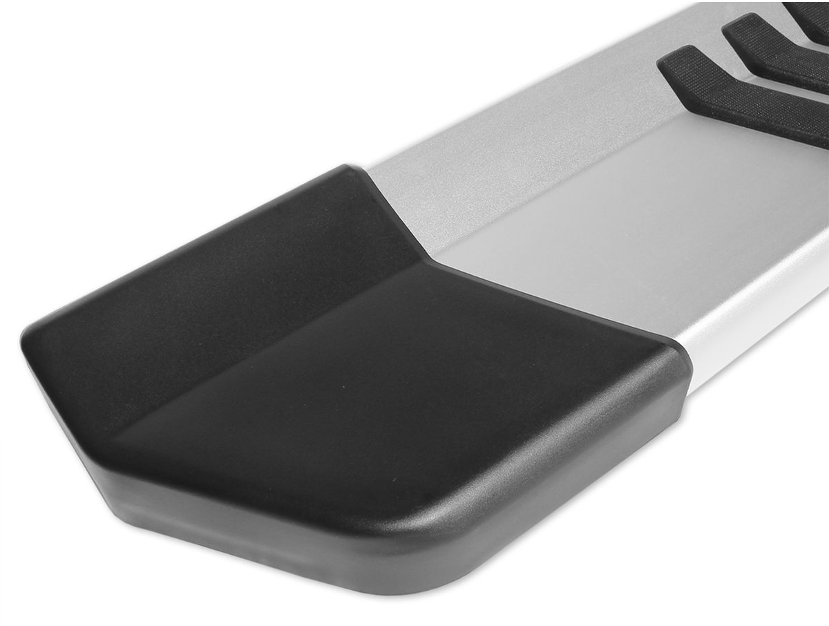 Raptor 6" Brushed Aluminum OEM Running Boards are manufactured from heavy-duty, aircraft-grade aluminum for superior strength, durability, and performance. This material receives a stylish brushed finish, which hides scratches and scuffs. Slip-resistant step pads boost traction in all weather conditions, while molded end caps prevent moisture, mud, and other contaminants from settling in the running boards.