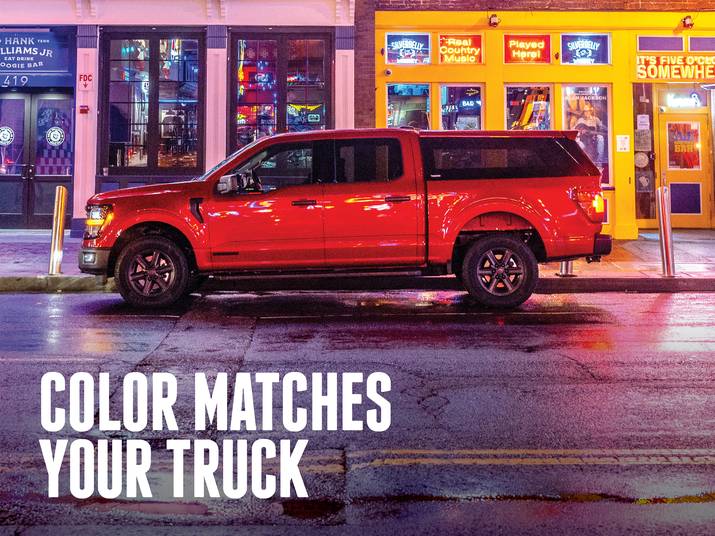 COLOR MATCHES YOUR TRUCK: Two-tone color-matched paint treatment with blackout trim and integrated spoiler blend refinement with aerodynamic performance.