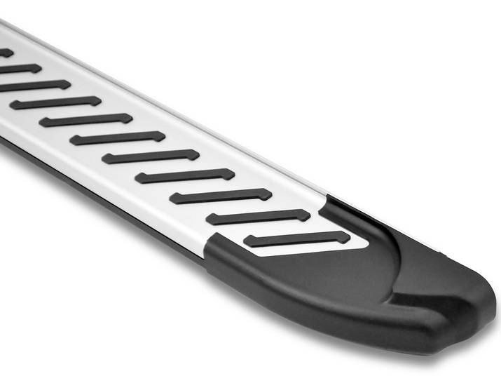 Romik RAL-T Silver Running Boards combine captivating European styling with the strength and functionality that you expect from a truck step. Romik uses premium aircraft-grade aluminum to make the RAL Series Running Boards lightweight, yet strong enough to support up to 400 LBs! The aluminum construction and sleek anodized finish also ensures that the board will withstand is also prevents the boards from rusting. The 5.5" wide step area features Grip Assurance technology, a unique rubberized treading that provides sure-footing in all weather conditions. Romik includes a complete mount kit, along with a step by step guide to ensure a quick and easy installation process.