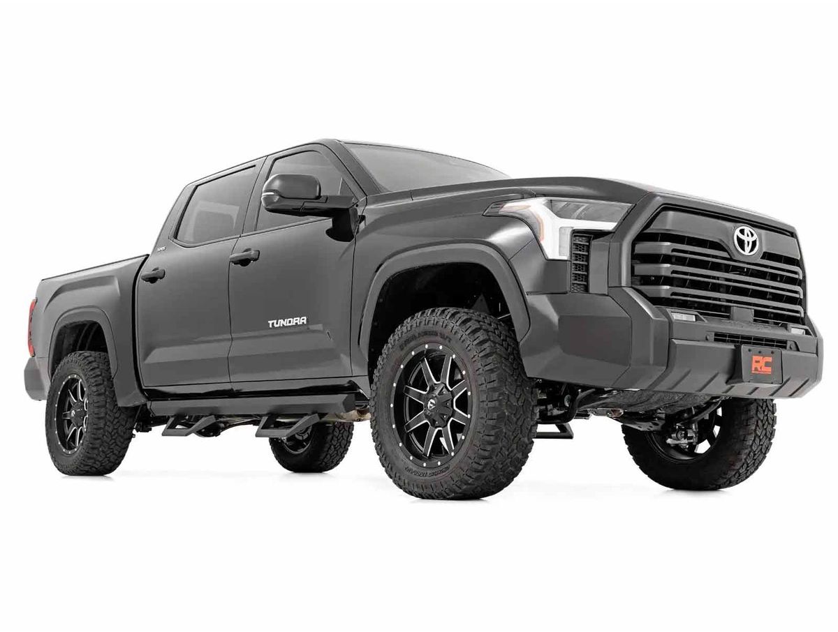Rough Country 3.5" basic lift kits give your truck, Jeep, or SUV better off-road performance and the ability to equip larger wheels and tires than original equipment. Available for a wide variety of trucks, each lift kit contains all the components and hardware you need to lift your vehicle. Depending on your truck's factory suspension, the kit can contain anything from simple strut tower spacers and lift blocks to torsion keys, additional leaf springs, drop spindles and more. With a Rough Country suspension lift installed, you'll have an easier time negotiating tough off-road terrain. Some kits can be installed at home, but professional installation and a post-lift alignment are strongly recommended. Upgrade your truck's off-road capability with a Rough Country 3.5" basic lift kit.