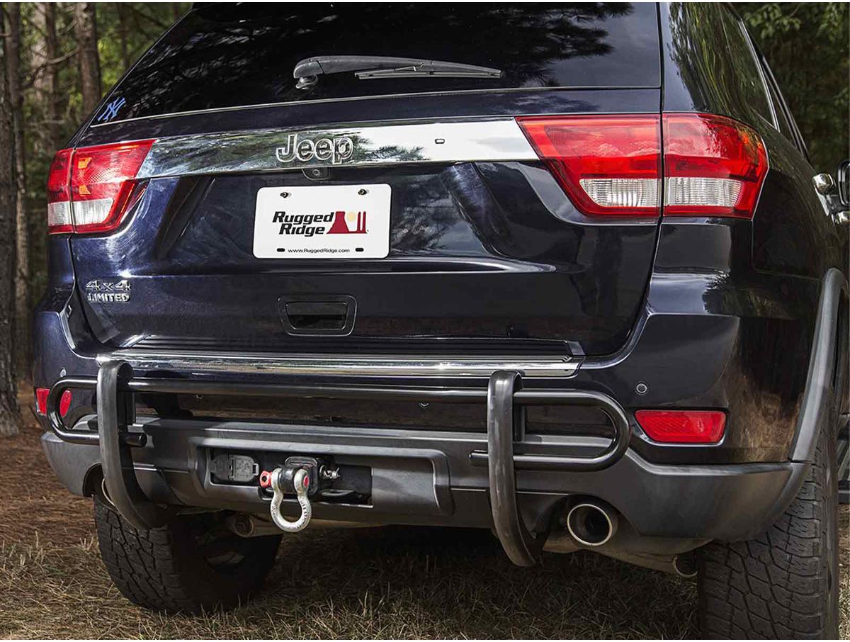 Protect your rear bumper with this double tube rear bumper guard from Rugged Ridge. The double tube design complements your Jeep with a nice rugged look. Will not fit models with SRT, Summit and Trailhawk trim packages. Will disable back-up sensors.