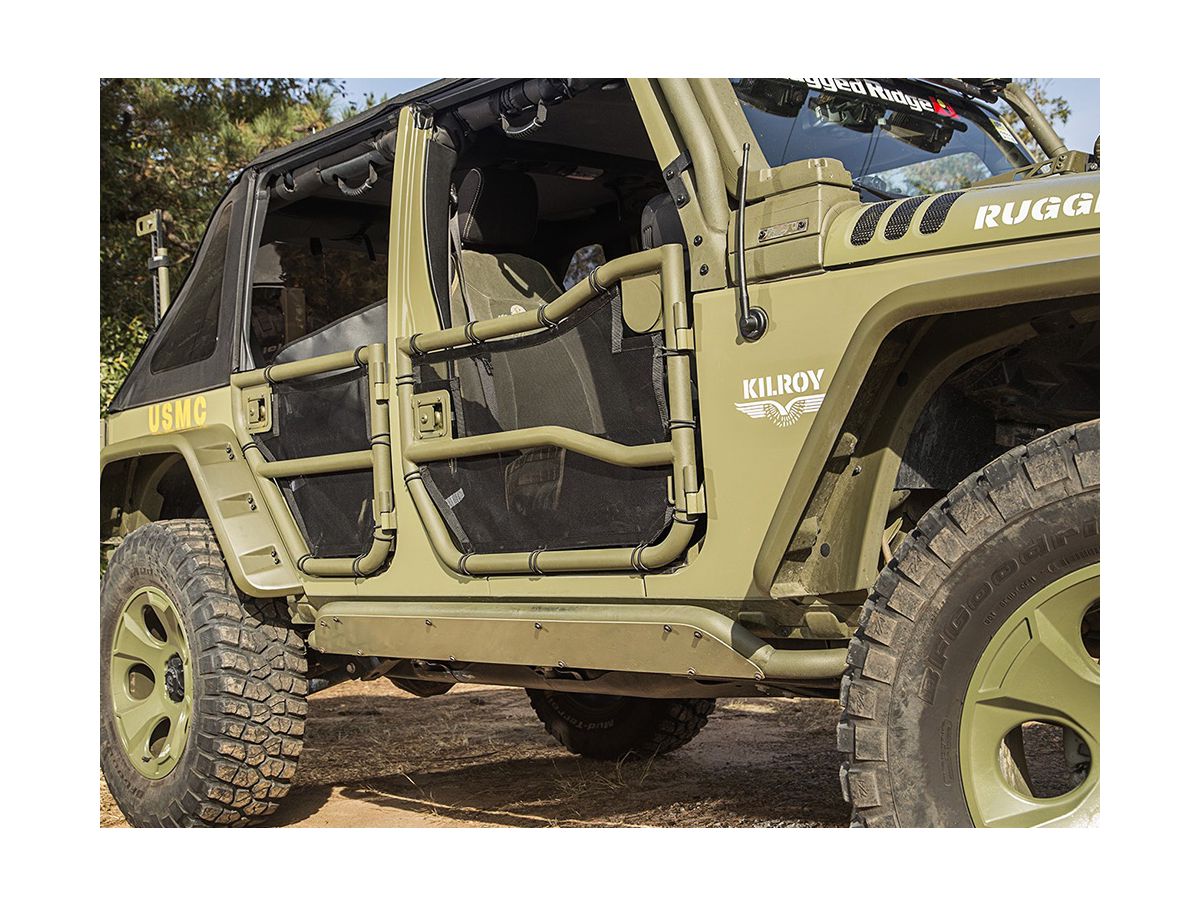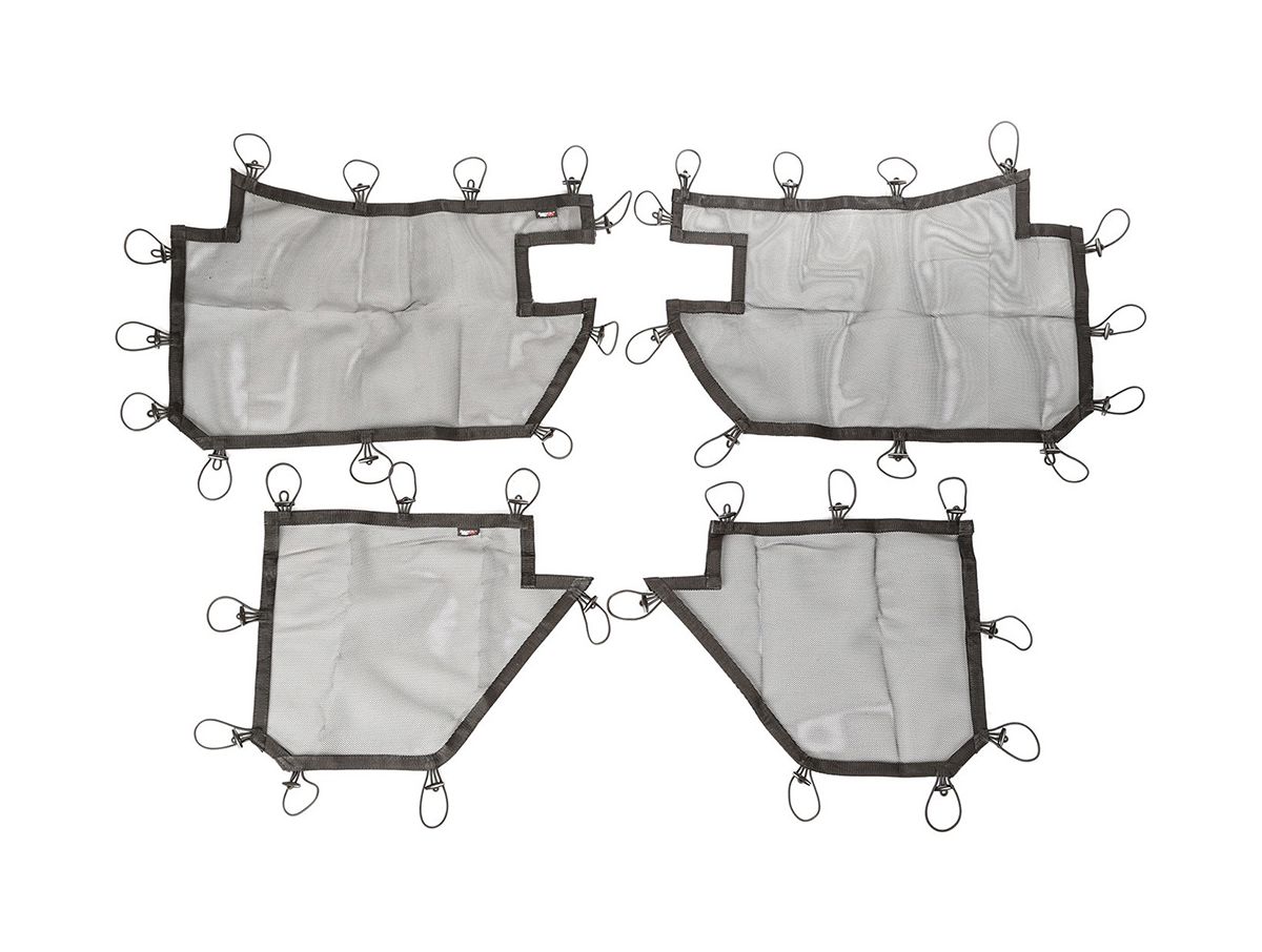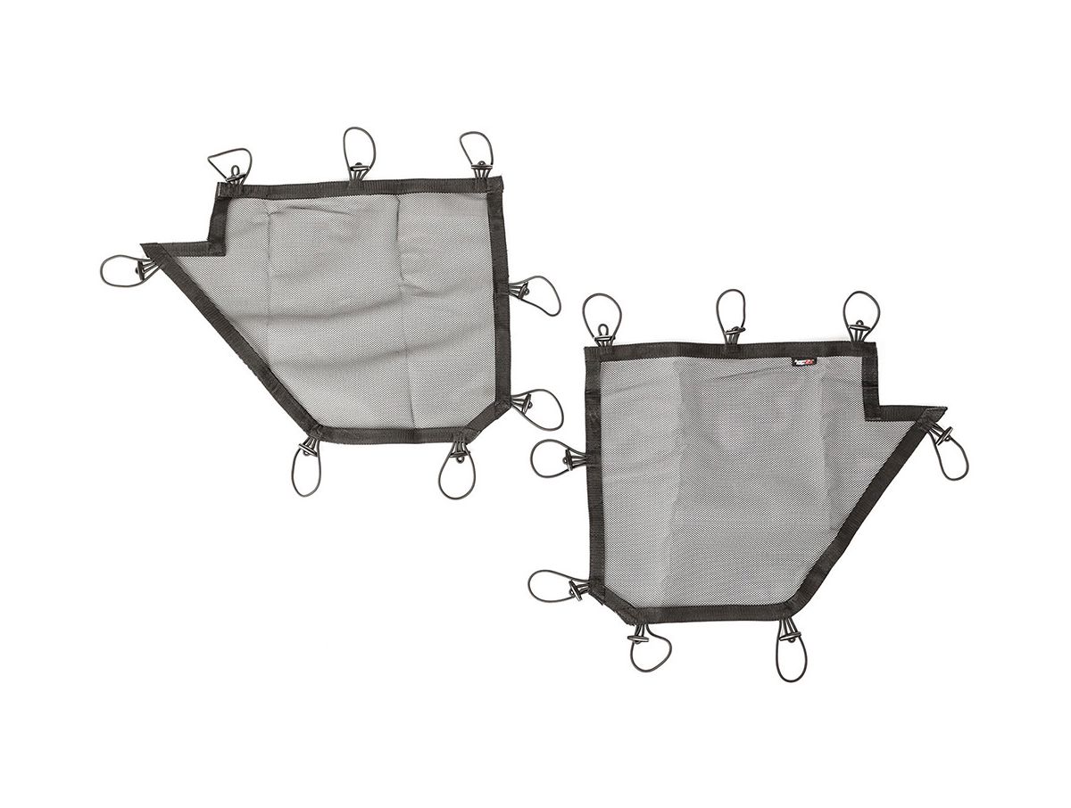 Rugged Ridge Eclipse Tube Door Covers gives Jeep owners the ability to enjoy the open air element of their Rugged Ridge Tube Doors while providing a higher level of containment for the passenger area and its contents. Nylon reinforced mesh construction offers a sturdy barrier that installs quickly and easily with the integrated bungee trap and button retaining system. Highly functional and great-looking…you’ll wonder how you ever did without them!
