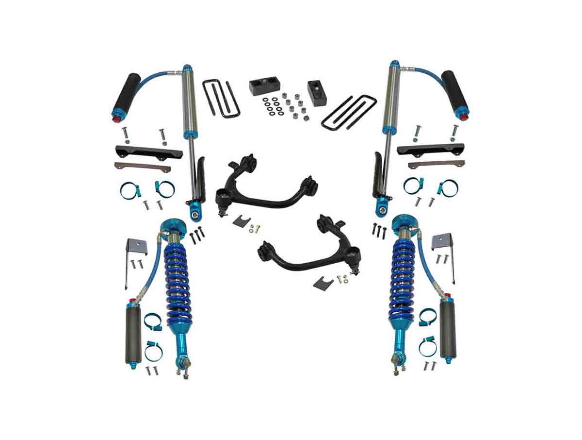 Upgrade your suspension with an American made Superlift 3" coilover lift kit. Superlift coilover lift kits come as a complete replacement suspension lift with added benefit of King Racing coilovers & shocks. This kit includes all front and rear lift components and hardware required for a smooth ride. Most kits come with coil springs and shocks.