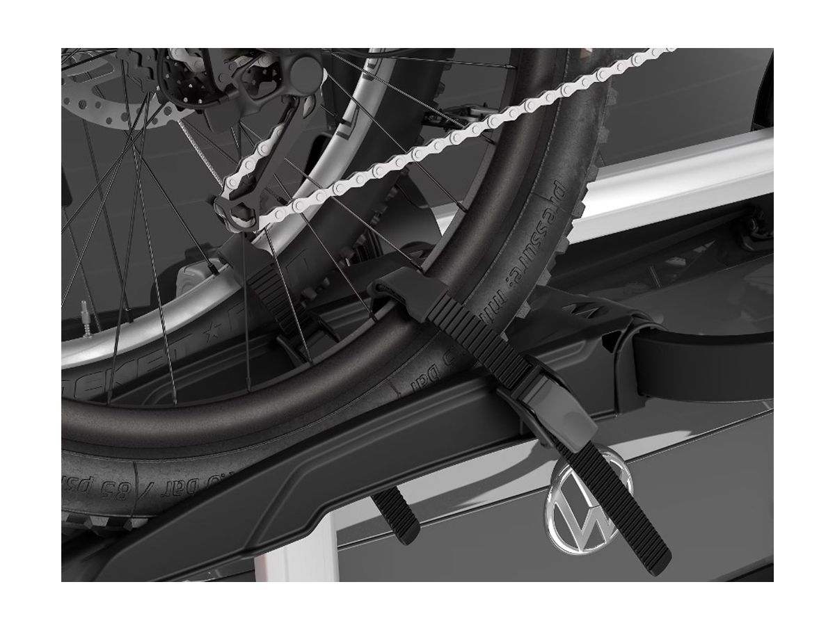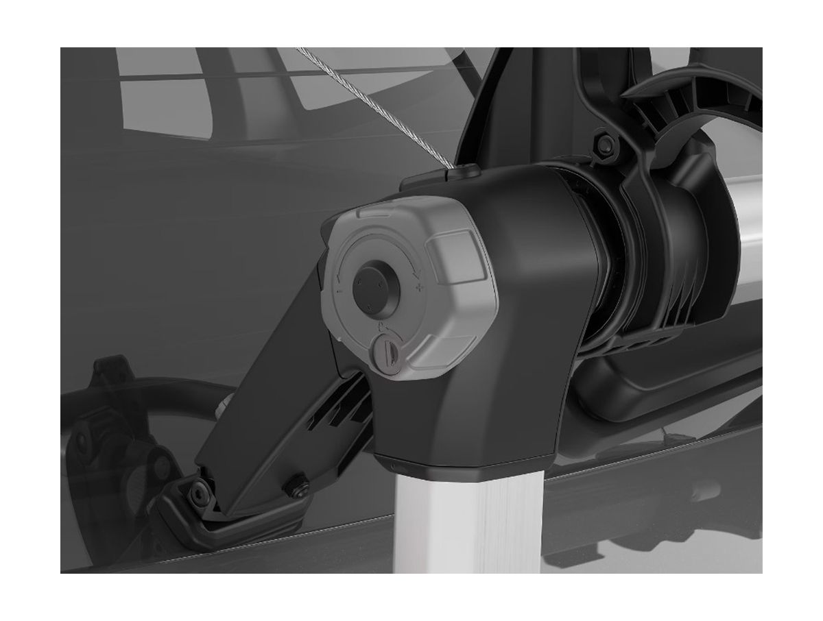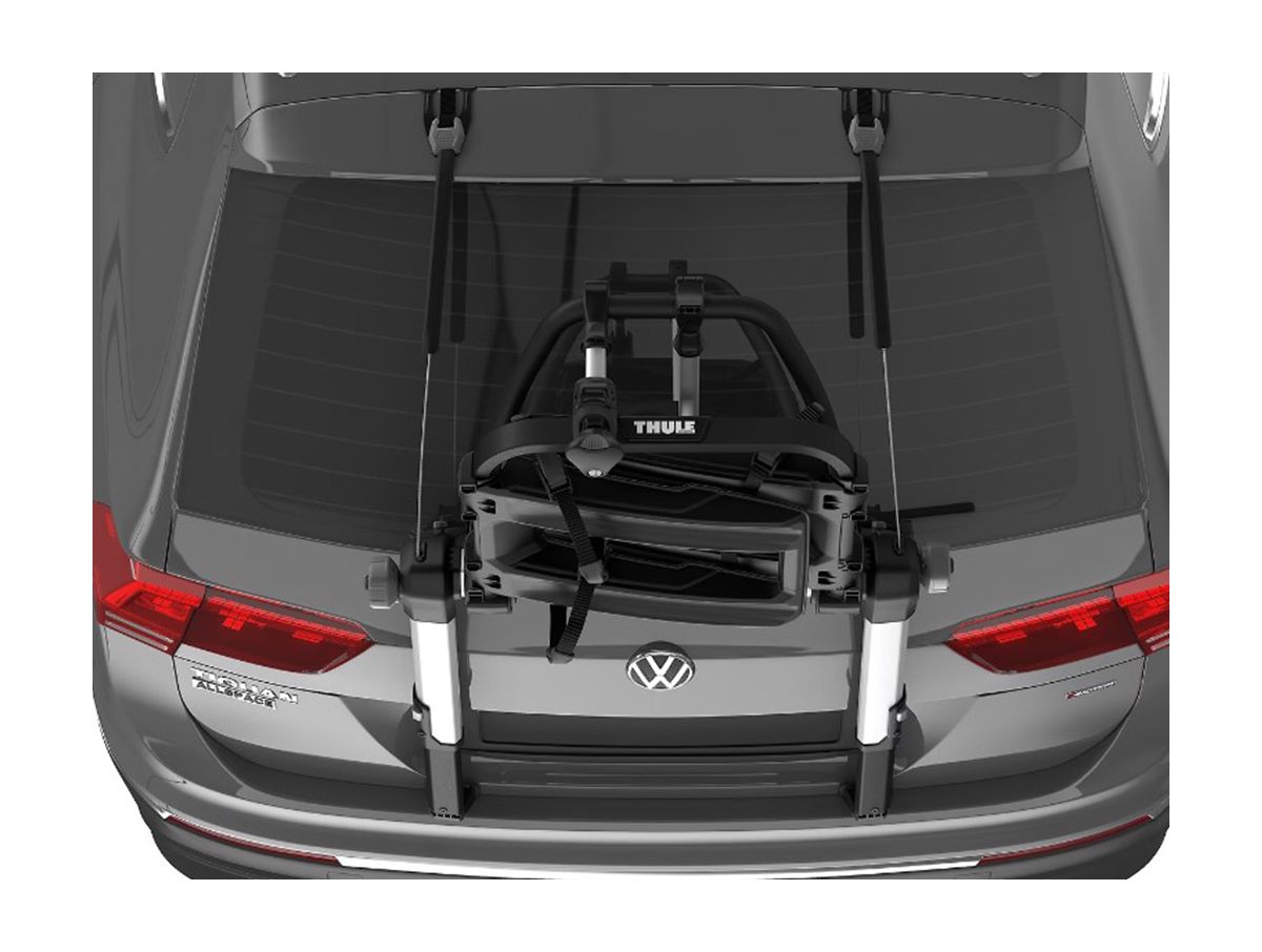 A premium bike rack, the Thule OutWay Platform Bike Rack has a raised platform providing better visibility of the rear lights/ license plate. Your bike(s) attach to the vehicle with steel cables, giving you maximum security. The torque limiting tightening system helps provide an easy mounting system. Your vehicle is protected with the twin hook attachment and the rubber protection pads. Wheels attach easily thanks to long wheel straps with pump buckles. Locks are included to lock your bike to the rack, and your rack to the vehicle. The truck can be open with the rack attached to your vehicle as long as there are no bikes on the rack. This bike rack is the Cadillac of bike racks!