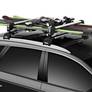 The SnowPack Extender Ski and Snowboard Carrier fits right on to most roof racks and is secured with the Thule One- Key System.
