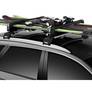 The SnowPack Extender Ski and Snowboard Carrier fits right on to most roof racks and is secured with the Thule One- Key System.