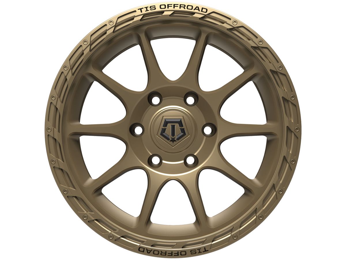 Built to last, each Toque wheel is constructed from a durable cast aluminum in a one-piece construction. The wheel is then covered in a satin bronze that is enhanced by the outer accent ring. To complete the look, the center cap is adorned with the TIS logo.