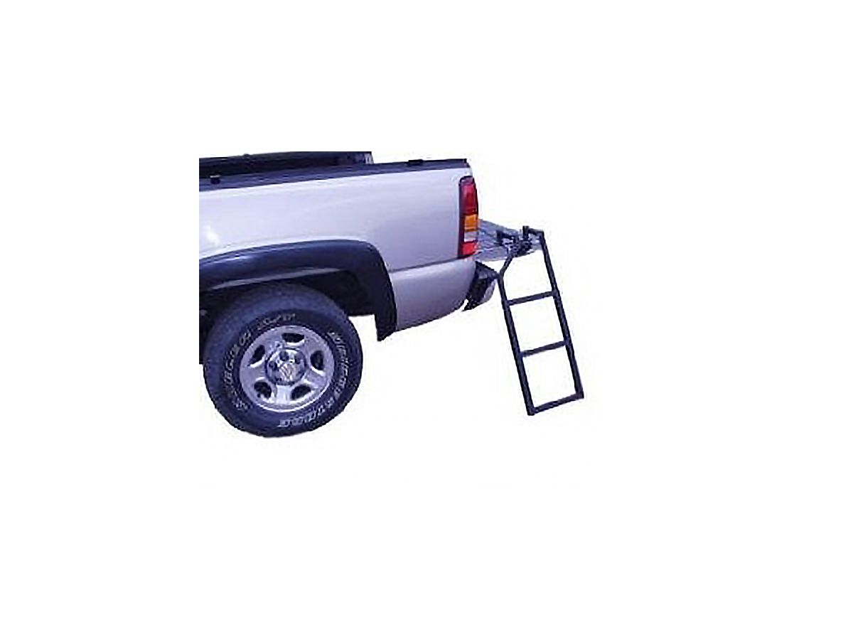 The Traxion Tailgate Ladders were designed to make truck bed access safe and easy. Their universal designs allow them to be mounted to virtually any midsize and full-size pickup truck with 28" and greater tailgate heights. Traxion tailgate ladders feature a heavy-duty base plate that easily bolt to your tailgate for a strong and secure mount location. The ladder itself easily attaches to the base and can be quickly removed if needed. With the tailgate down, users can quickly swing the tailgate ladder into position or fold it away in seconds.