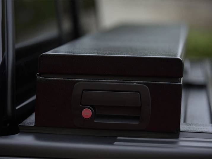 Operating the American Roll Cover is quick and easy. Simply use the provided key to unlock the cover or unlock your tailgate to access the keyless entry latch. The cover is tension-driven to allow smooth retracting into its ultra-low-profile canister, measuring only eight inches tall and deep. The integrated pull strap helps you easily open and close the cover from your tailgate. For convenience, the American Roll Cover uses a built-in auto-latch system that locks the cover in 12-in. increments along the bed rails.