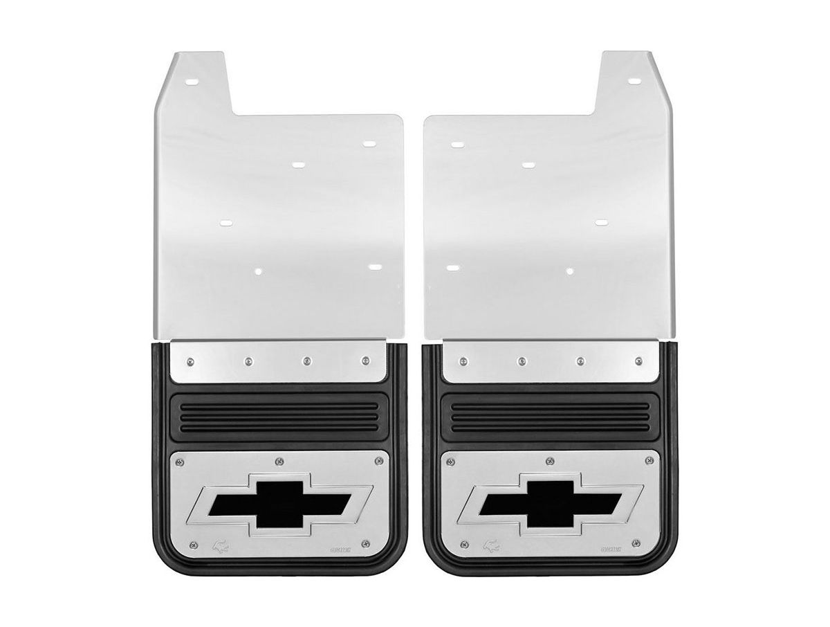 Whether you are a Chevy, Dodge, or GMC fan, Truck Hardware has you covered. There are multiple finishes available on the steel plates including stainless and black. Some models also offer red or gold logos. Constructed from heavy-duty rubber and featuring a T-304 stainless steel plate, these Gatorback mud flaps will turn heads and protect from rock chips and mud!