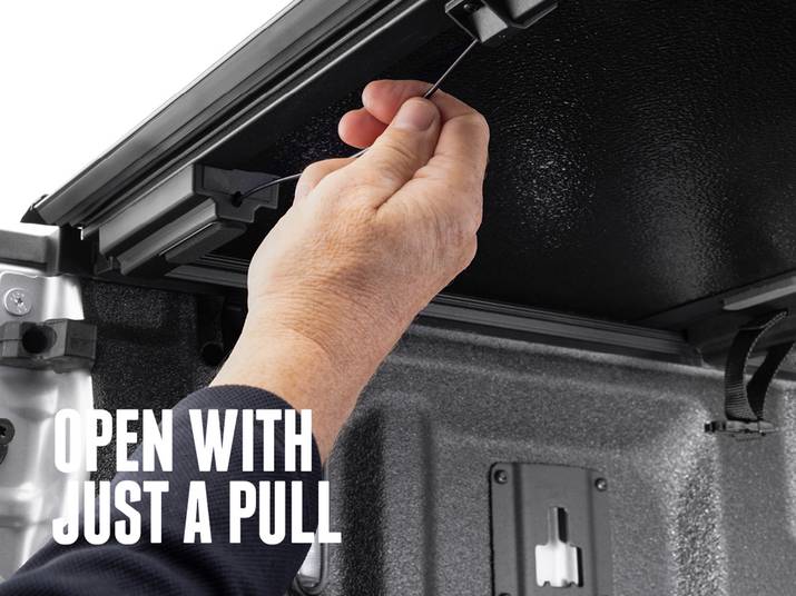 With a simple pull of the release cable from either side of the bed, the cover folds forward for ⅔ bed access and secures in place with integrated retaining straps. If full bed access is required, no problem. Removing the entire bed cover takes just minutes, thanks to the convenient quick-release design, and then it re-installs just as quickly without any tools.