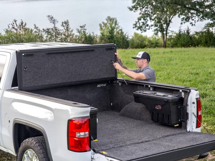 Incidental or consequential damage or loss of contents due to use, neglect, lack of maintenance, misuse or abuse of the Flex Cover is the sole responsibility of the truck owner and operator. Paint damage to your truck is not covered under this warranty. When operating your truck always keep the Flex Cover in either the fully closed and latched position, or one of the two approved open positions. The first approved open position would be the first, second, and third panel stacked onto the forth panel and the buckles must be secured together. The second approved open position would be all four panels standing up vertically behind the cab. In this position both prop rods must be attached and the buckles secured. Do not operate the truck at excessive speeds with the Flex Cover in either open position.
