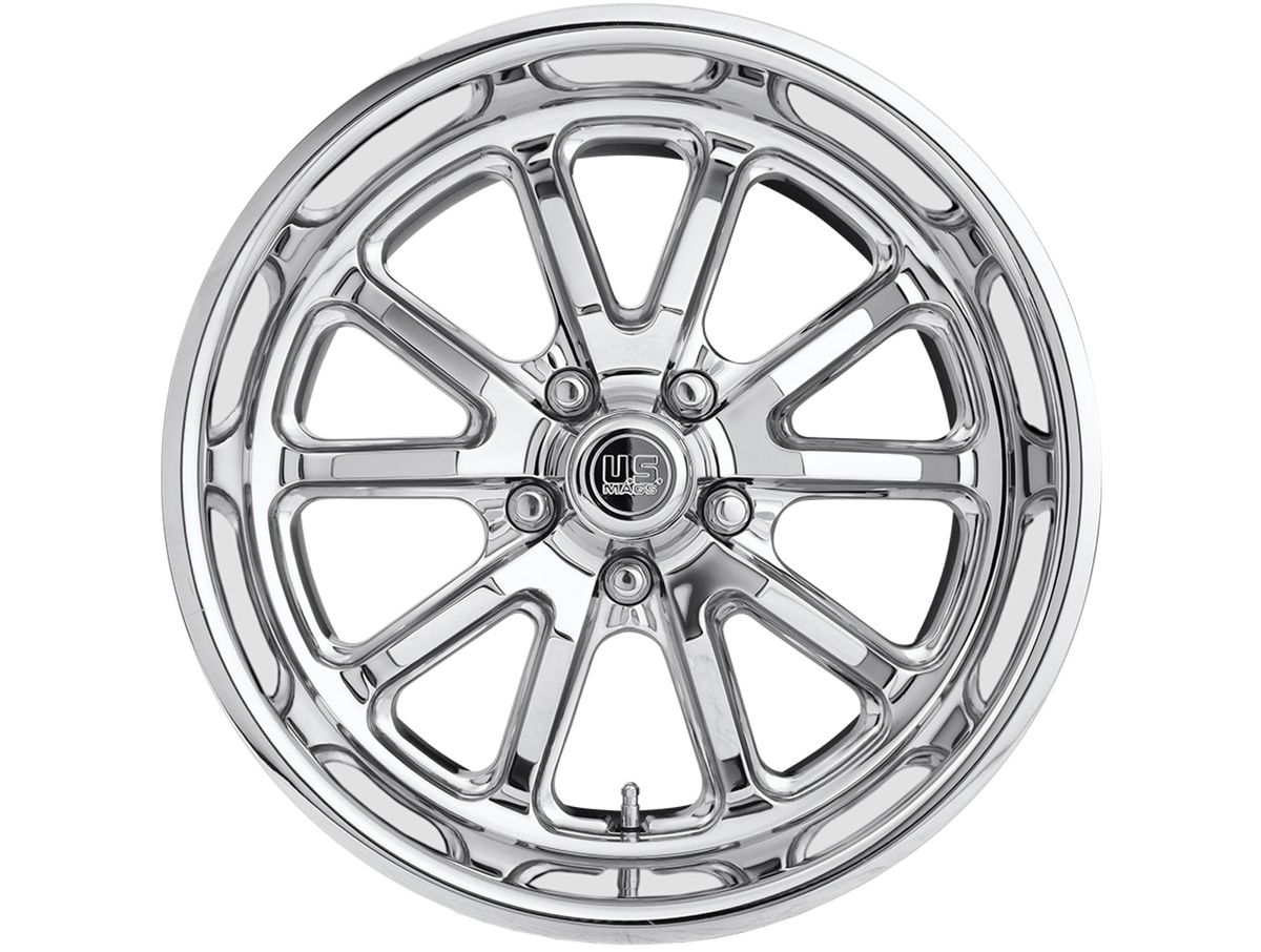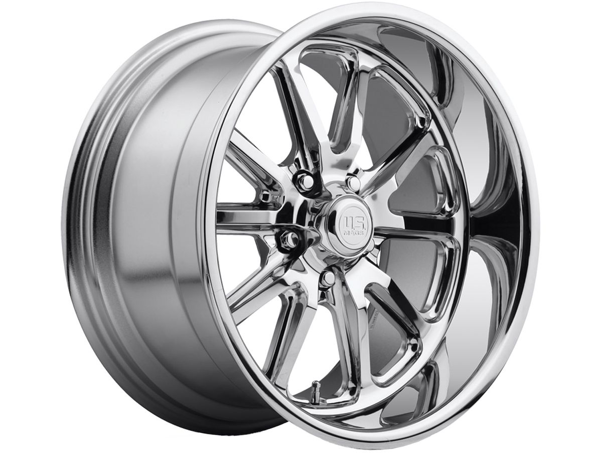 The wheel is covered in a chrome plated finish and the center cap is adorned with the US Mags Logo to complete the look.