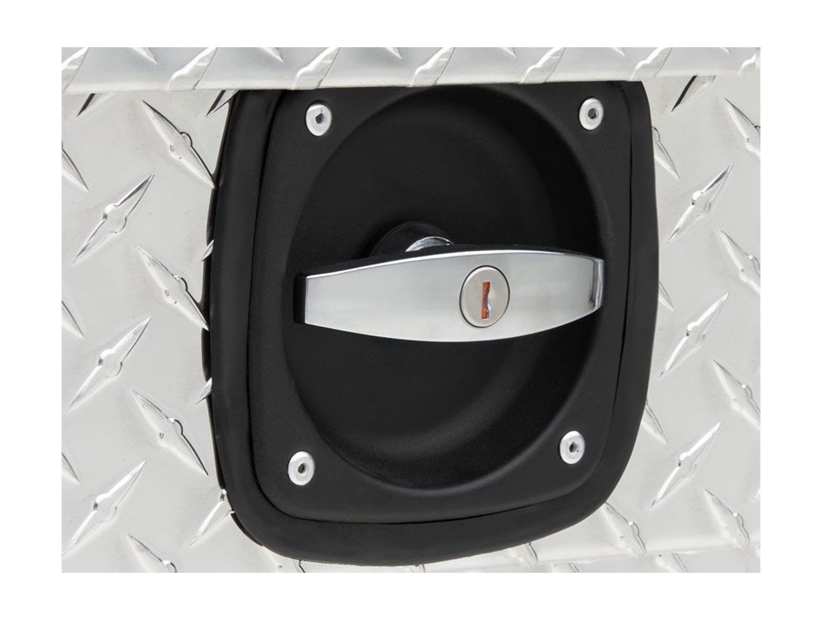 The RidgeCore lid has a patented rigid foam core that adds extra structural strength to the toolbox, preventing warping and bending. The BedRug liner reduces racket & protects tools. The liner does remove for cleaning. Inside of the toolbox there are built in screwdriver holders, along with three sliding trays making it a great place to keep your small items. Due to pre - drilled slots for mounting, it makes installation easy. This box includes all necessary mounting hardware. You can’t go wrong with the secured angled toolbox from UWS.