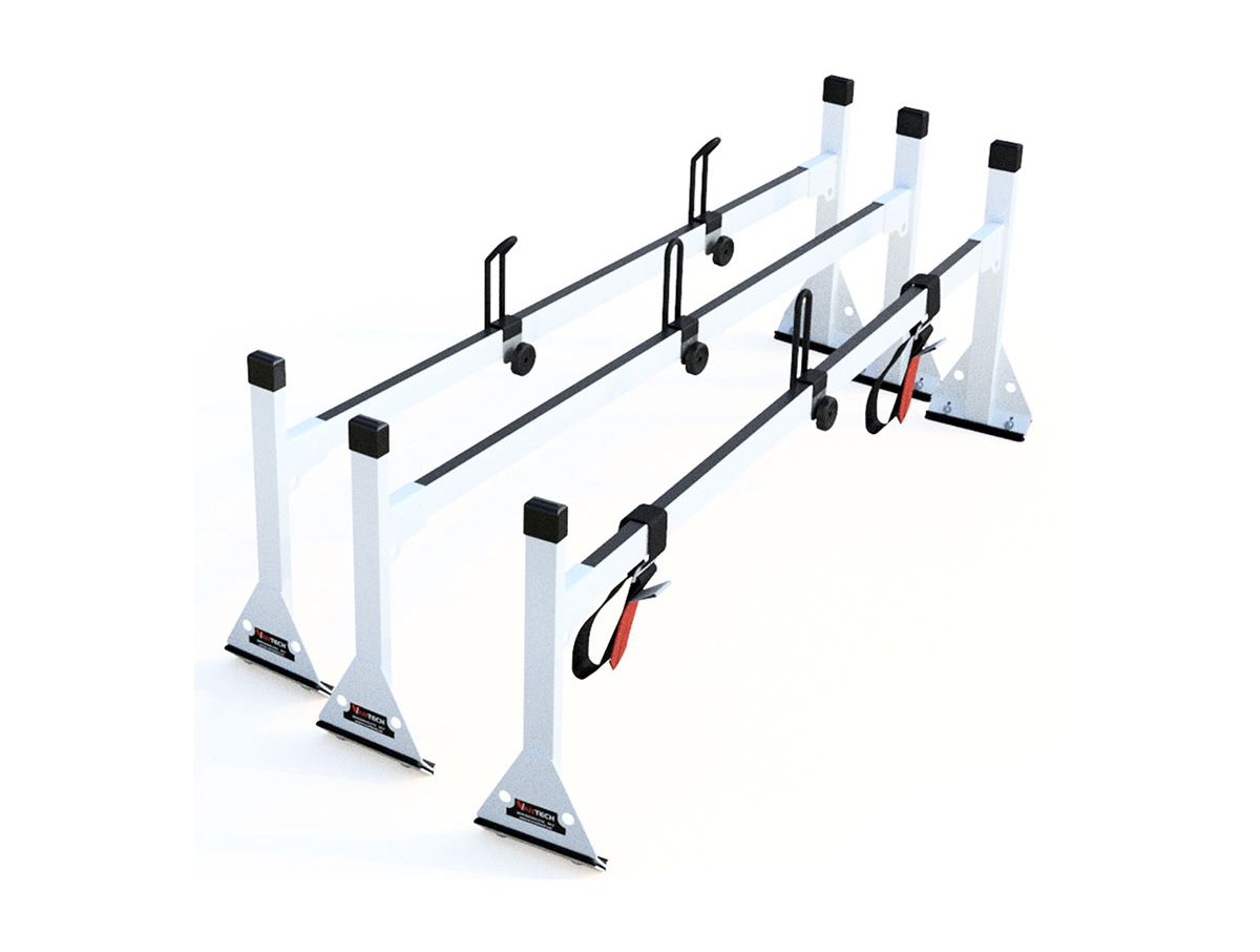 The Vantech KUV Ladder Rack is made especially for your KUV vehicle. This ladder rack is based off the H1 aluminum system. The crossbars are made of reinforced extruded aluminum and has built in channels. Eack crossbar has a capacity of 250 pounds, and the crossbars are protected by a non- slip bar guard made of rubber. The base is welded onto the post to create a complete seal. You always need a ladder, so why not get the Vantech KUV Ladder Rack.