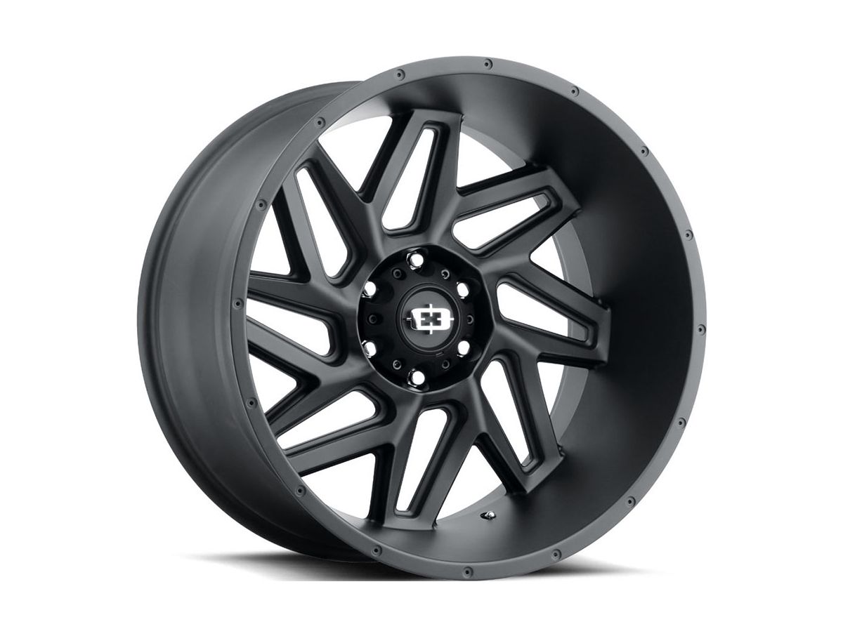 The wheel is covered in a matte black finish that is enhanced by the spot-milled lip accents. The center cap is adorned with the Vision logo to complete the look.