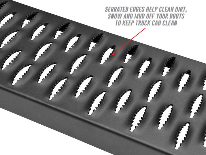 While durability is a high priority for Westin, functionality is arguably the most important. These running boards feature a 6-in.-wide, board-length step tread for effortless entry. Lining the entire length of the boards is a serrated, ¼-in.-tall, high-punched tread to boost traction and clear debris from shoes and work boots.