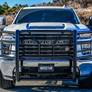 The Westin HDX Modular Grille Guard comes equipped with heavy duty rubber pads and a full punch plate center grille. The punch plate center grille is offering optimal protection as well as rugged looks, completely enhancing your truck's front end. A full wrap around design ensures complete grille and headlight protection. The Westin HDX Modular Grille Guard is constructed of mild steel and has a black powder-coat finish.