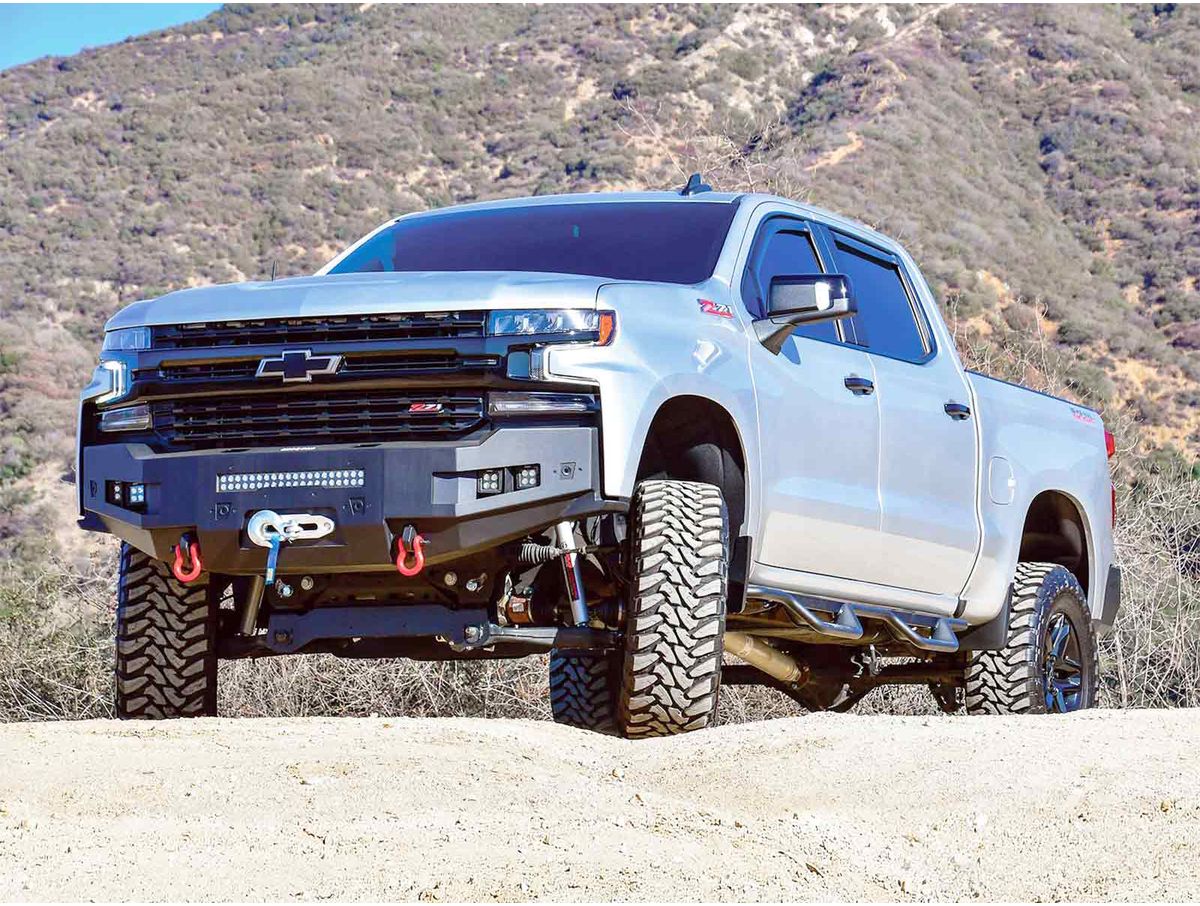 Aside from the Westin Pro-Series’ integrated winch mount, the bumper also includes several accessory mounts. Pre-drilled light mounts accept most 20-in. single or double-row LED light bars, while recessed mounts in each high-clearance wing accept up to two pairs of LED pods. Other features include heavy-duty D-ring shackle lugs to ease recovery efforts and provisions for factory parking sensors to retain the full functionality of your vehicle’s safety systems.