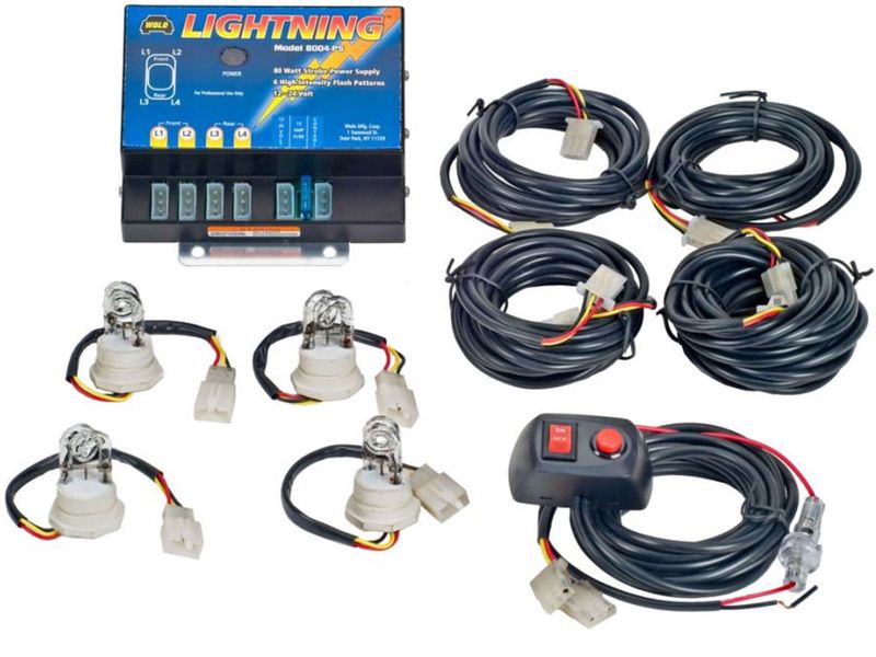 Be seen with a Wolo Lightning Strobe light kit. This kit include 4 M-shamed strobe bulbs that are encapsulated in silicon to protect them against road vibration and moisture. Wolo lightning strobes can be ordered with clear or amber bulbs. These Wolo strobe bulbs are equipped with a state-of-the-art microprocessor that will provide years of dependable service. Wolo Lightning Strobe light kits feature a rubber grommet base on each bulb and install into a 1" hole that is drilled into the headlight and taillight assemblies. Once installed, this light kit offers 6 advanced flash patterns that are controlled with the included control panel.