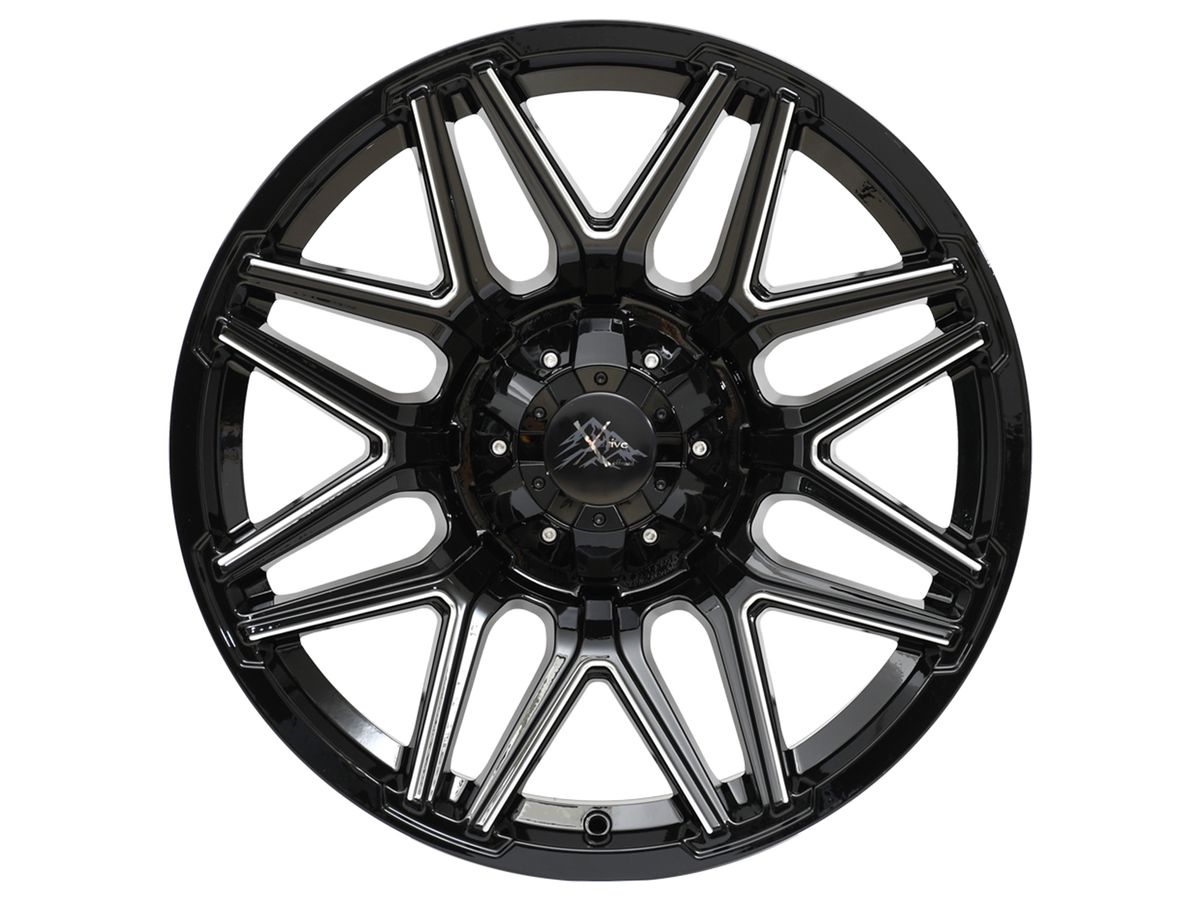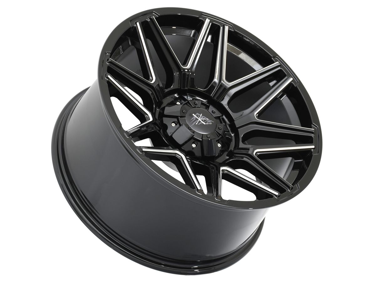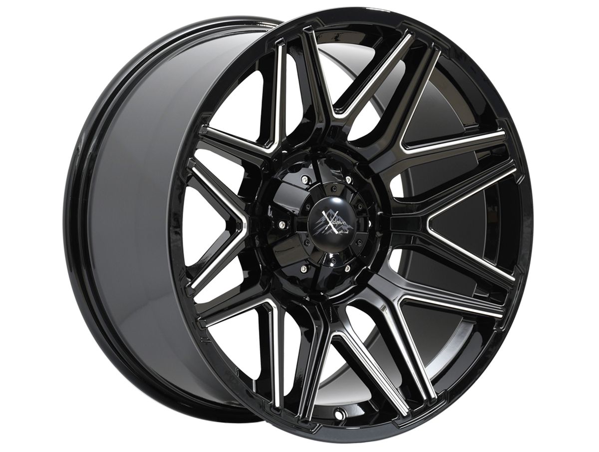 The wheel is covered in a gloss black finish that is enhanced by the milled spokes. The center cap is adorned with the X Drive logo to complete the look.